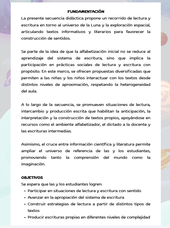 Una secuencia corta que invita a los estudiantes de PRIMER CICLO a leer, escribir y crear a partir de un tema que fascina: la Luna.
